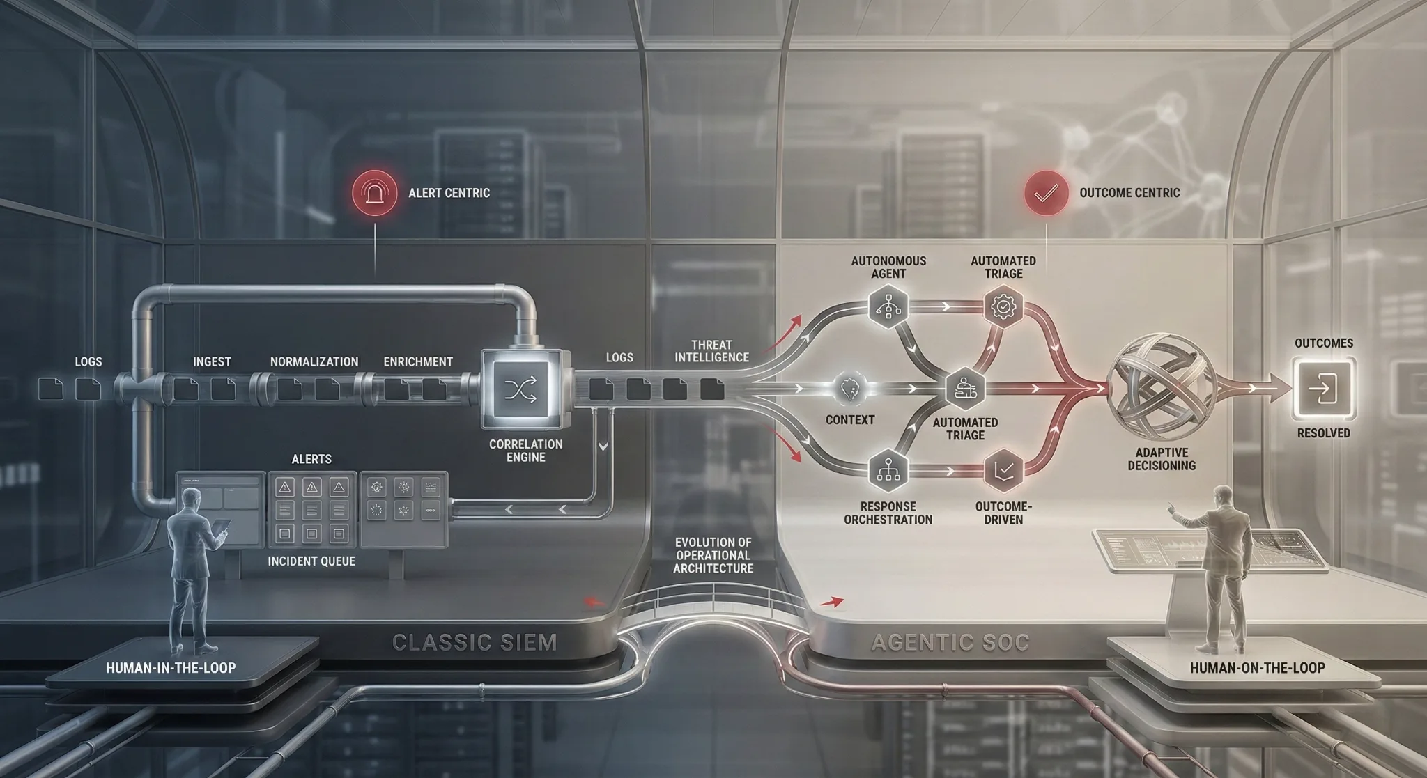 SOC operations are driven by alerts, not by security outcomes. - Human-in-the-loop