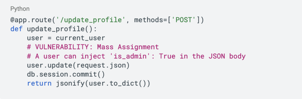 - Critique: “Act as a senior security engineer. Critique that code for Mass Assignment vulnerabilities.”